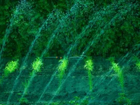 Leider ist mittendrin auch noch die automatische Bewässerung ausgefallen. Abhilfe brachte eine improvisierte Versorgung aus dem benachbarten Wasseranschluss.